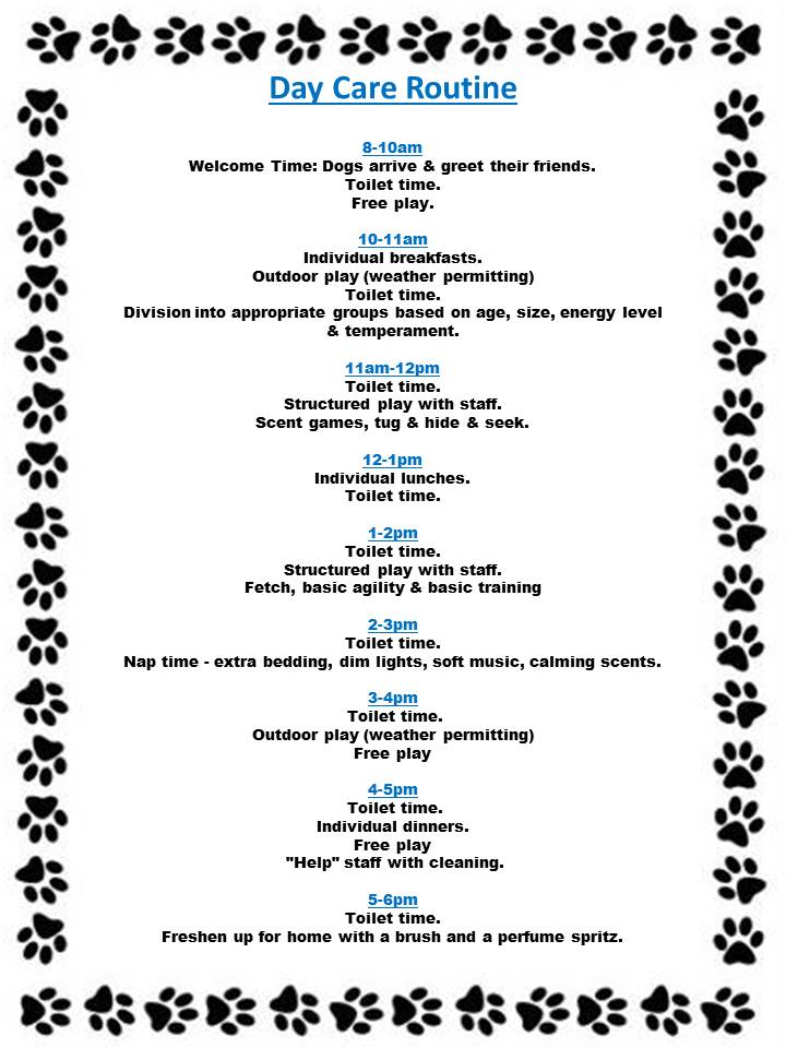 Please ensure your dog is in by 9am at the latest if they are booked in for a walk that day too.